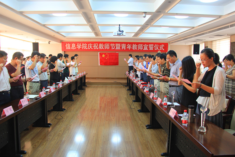 9月9日下午,信息学院庆祝第32个教师节暨青年教师宣誓仪式在学实楼报告厅举行。副校长朱莉、相关部门负责人出席活动,学院领导、各系主任、党支部书记、全体青年教师参加此次活动。