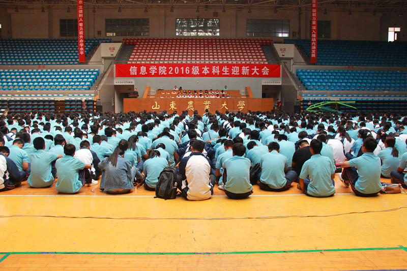 9月23日上午,信息学院于南校体育馆隆重举行2016级本科生迎新大会。学院领导班子成员、各系主任、专业主任、2016级新生班主任以及全体辅导员出席了典礼,信息学院2016级864名新生参加了大会。