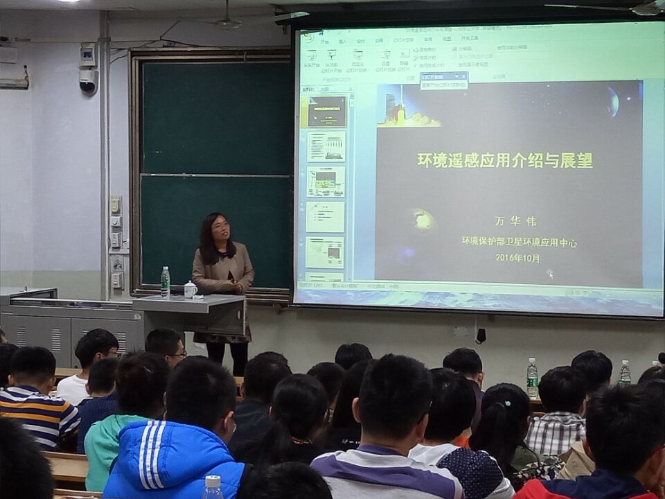 会议伊始,万华伟围绕“环境遥感应用与展望”的主题,结合自身的工作经历,对环境监测需求与遥感优势,国内外卫星系统的发展现状,环境卫星应用以及环境遥感展望等进行了专业介绍。她指出新时期遥感技术应用广泛,涉猎大气环境,水环境,生态环境检测诸多方面;通过国内外遥感产品的对比介绍了当今遥感技术的发展现状;并对遥感技术的发展前景进行了展望,遥感技术发展前景广阔,发展无人机技术,发展环境专用传感器,高分对地观测专项发展,推进和实践环境遥感应用。希望同学们能够把握好大数据时代所赋予的机会,脚踏实地的学习。