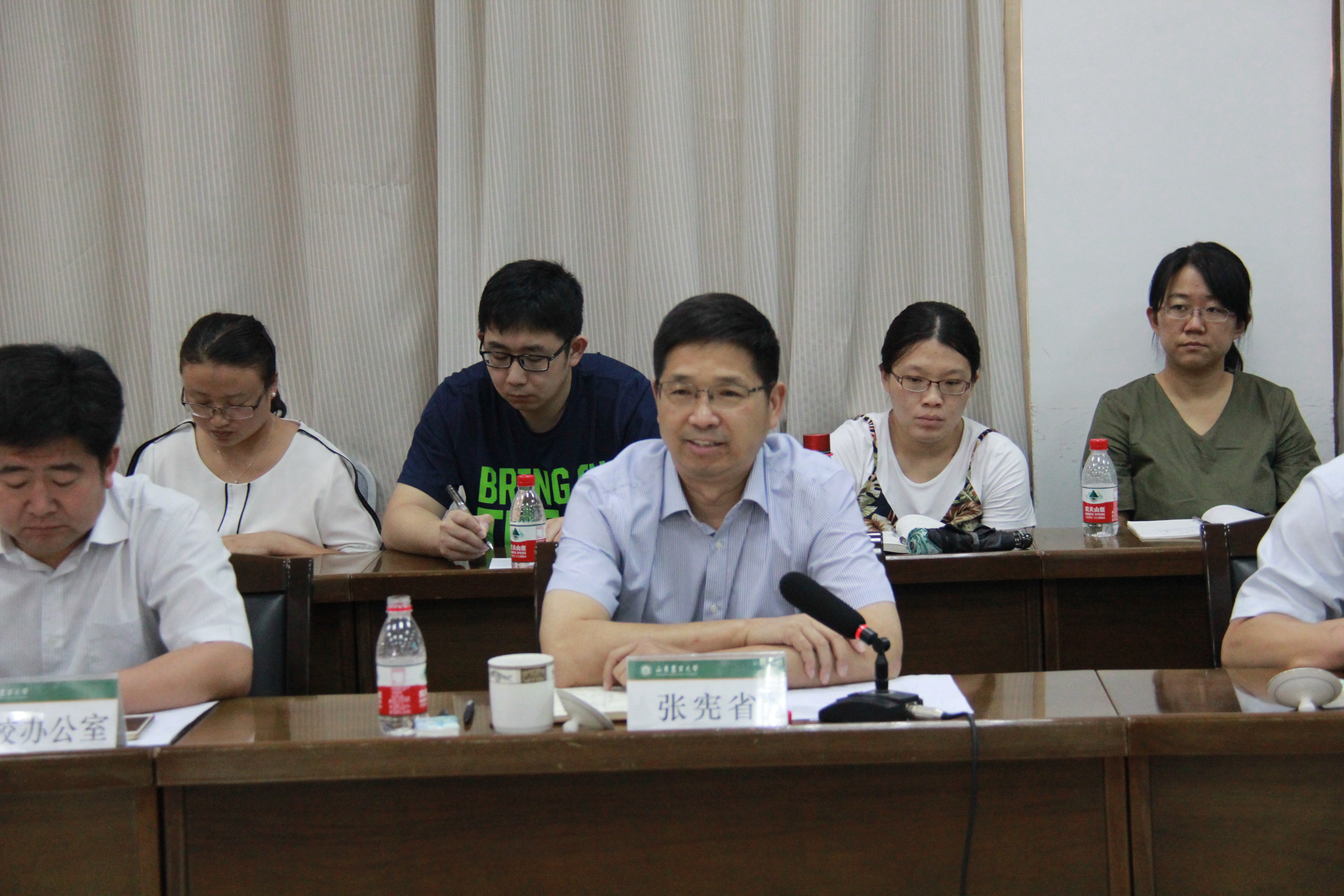 张宪省在听完汇报和交流后对信息学院的工作给予充分肯定。他说,今天信息学院就学院现状、存在问题和发展规划进行了详实的汇报,各职能部门负责人和老师们也谈了很好的意见建议,希望学院认真梳理,结合实际把建议和措施落到实处。他强调,现在经济社会的发展对信息学科等提出了更高的要求,现代农业的智能化、信息化、现代化离不开信息学科的发展,学院学科建设要以信息学科为核心,充分发挥信息学科作用。要以信息学科特别是农业大数据研究为中心规划整个学院的学科建设与发展。我校大数据中心已经基本具备优势学科发展的条件,下一步要狠抓内涵建设,校内要有高水平展示中心,校外下大力气建好用好基地,特别是抓住国家“农高区”建设机遇,使其成为我校对外展示的窗口和亮点,获得更多的资源支持。要加强合作,主动对接传统涉农优势学科,使信息学科与优势学科在合作中相互提升。要发奋图强练好内功,学校在信息化建设、公共平台建设和一流学科培育上将给予信息学院适当的政策倾斜,学院要理清思路,在学校相关职能部门支持下,解决好制约学院发展的关键问题。要抓住“大数据” “互联网+”“信息技术+农业”等机遇,经过几年的艰苦奋斗使信息学院发展到一个新水平,实现学科的跨越式发展。
