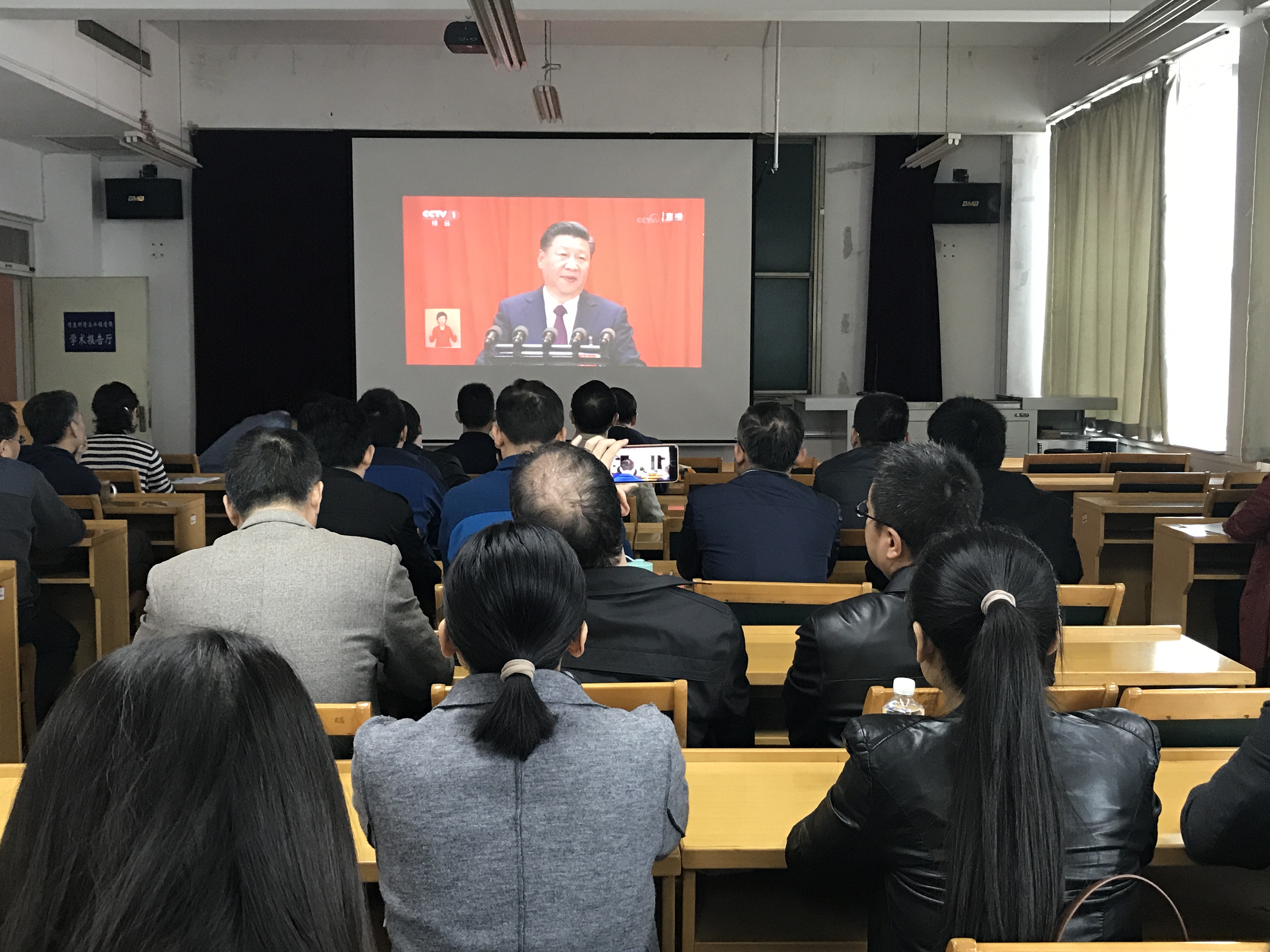 10月18日上午,信息学院全体教工党员收看中国共产党第十九次全国代表大会盛况,集中收看开幕式直播,认真聆听习近平总书记工作报告。