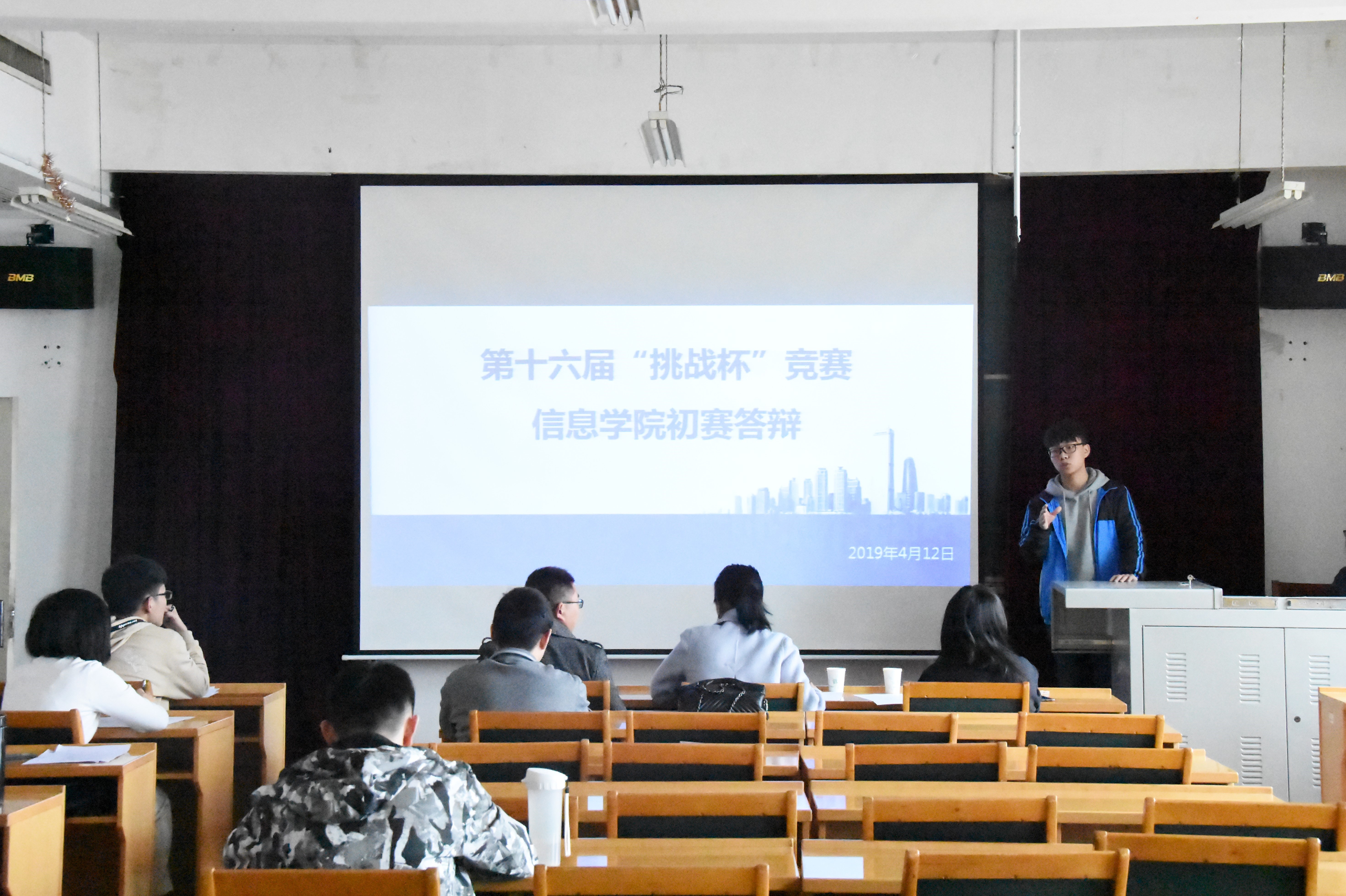 4月12日下午,信息学院于北校区文理大楼804成功举办“挑战杯”院级初赛。本次比赛由李俊清、刘晓君、张萍三位老师担任评委,各参赛团队代表参加。