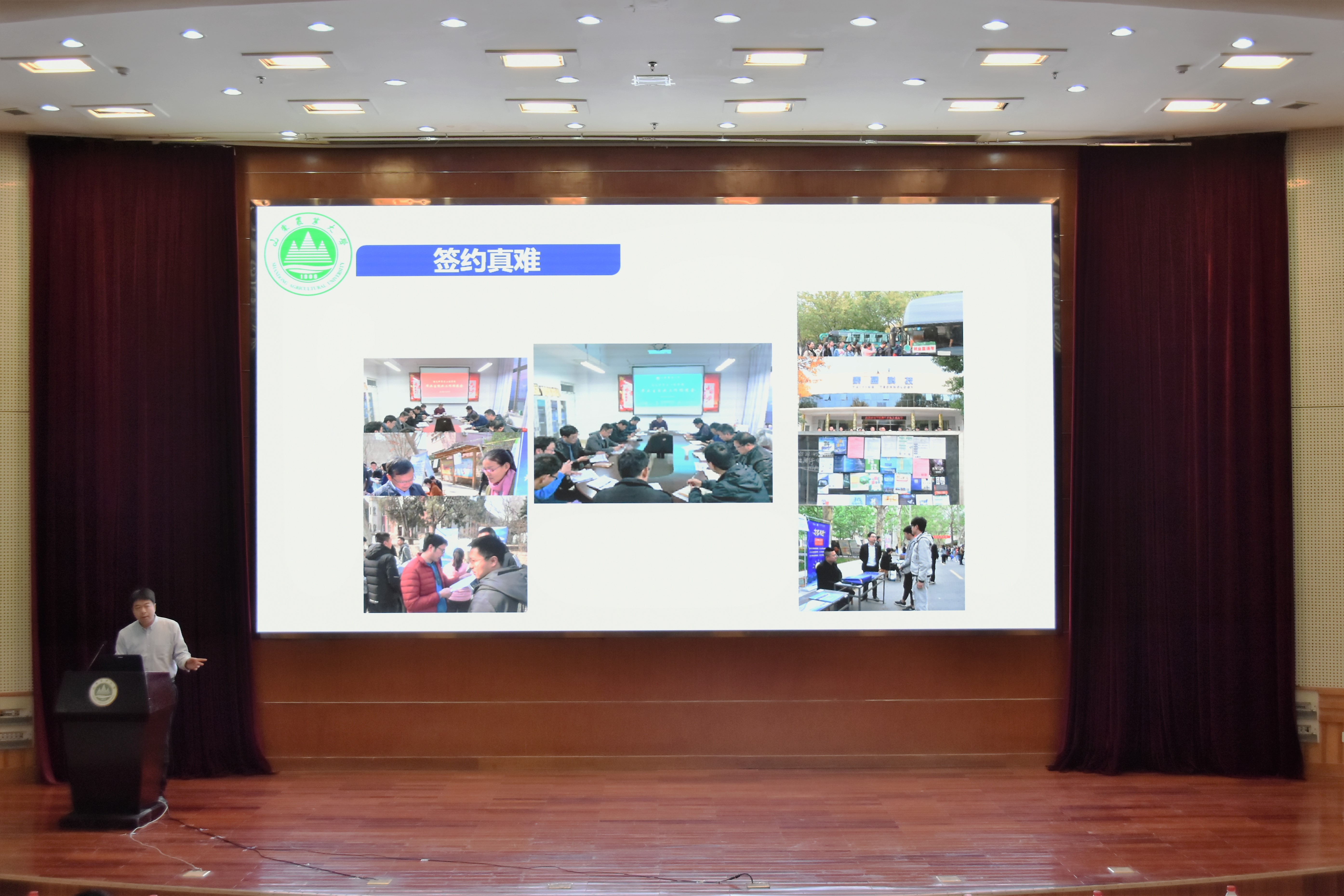会议旨在帮助同学们明确就业形势,树立就业目标,进一步推动2020届毕业生就业工作全面有序开展。会上,学院团委书记徐振珍老师着重向大家强调了安全相关问题,提醒大家在外出求职过程中要从多方面、多角度做好安全防护,始终把人身财产安全放在第一位,确保求职就业顺利进行。随后,学院党委副书记徐宏志以“做一个对自己负责的人”为主题,对当前同学们所面临的严峻就业形势、专业前景等方面进行了分析,鼓励毕业生要明晰当前就业形势,端正就业态度,增强就业信心,做好就业准备,并提醒大家要认真思考、科学规划、果断行动,做一个对自己、对家庭、对社会负责的人。