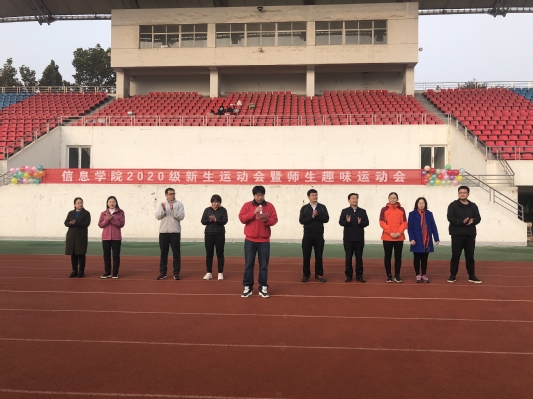 11月1日,信息学院于南校区体育场成功举办2020级新生运动会暨师生趣味运动会。学院党委副书记徐宏志、副院长王志军、副院长张洪进出席本次活动,新生班主任、团委老师、2020级全体新生参加。