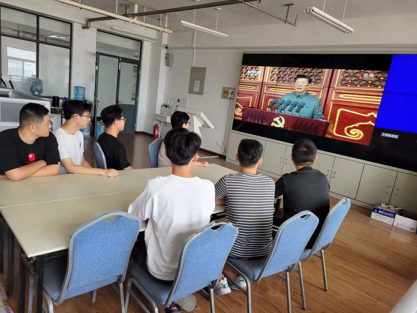 一大早,信息学院师生早早做好准备,在办公室、会议室、教室、社区活动室、宿舍等不同地点,通过电视、网络、远程教育站点等媒体,集中收听收看大会盛况,认真学习习近平总书记七一重要讲话,共同感受建党百年的伟大历程,共同见证这一伟大时刻。