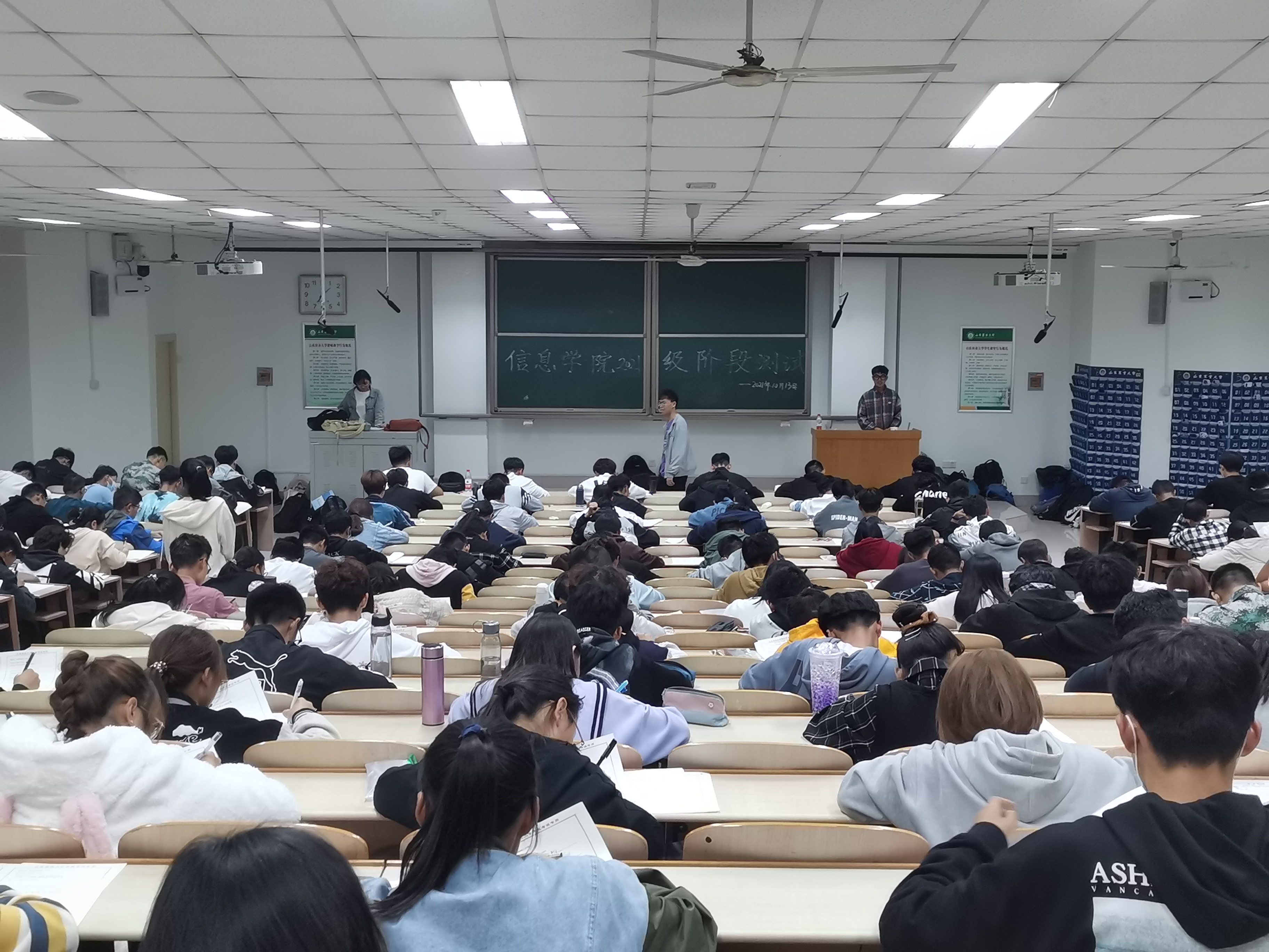 10月13日晚,信息学院于泮河校区综合楼组织开展2021级新生阶段测试。团委老师、学生干部担任监考人员,2021级全体新生参加。