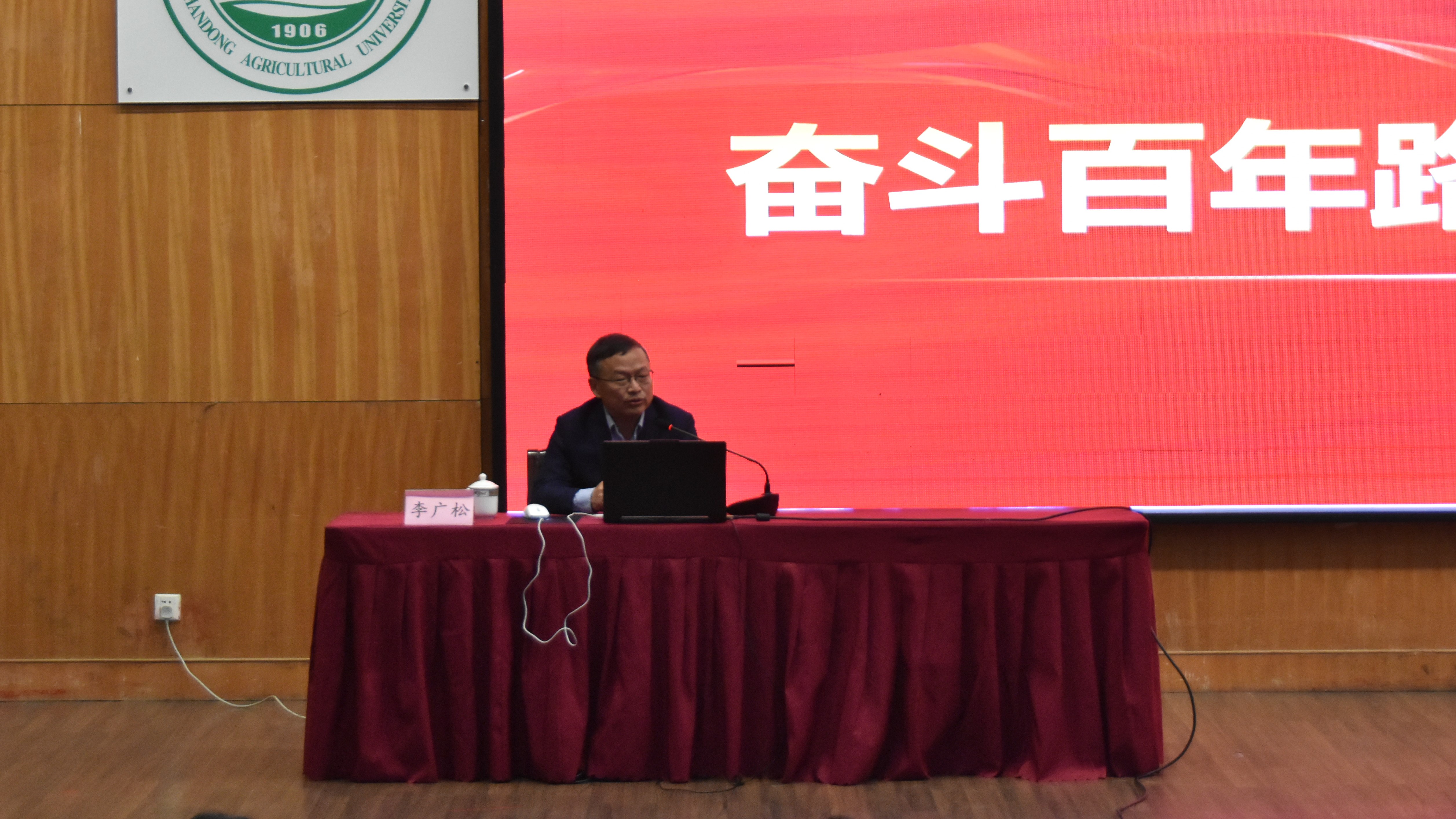 会上,李广松书记结合习近平总书记“七一”重要讲话精神,作题为“奋斗百年路 启航新征程”的专题党课,从“丰功伟绩、恢宏史诗”、“精神血脉、代代相传”、“以史为鉴、开创未来”和“寄予青年、伟大号召”等方面展开论述,给全体党员同志提出三点要求:一是要坚定理想信念、增强青年志气。作为新时代高校大学生,生逢其时,使命光荣,以强农兴农为己任,用所学专长,奉献青春智慧;二是勤于修身立德,增强青年骨气。鼓励全体党员同志要正确对待一时的成败得失,处优而不养尊,受挫而不短志,不断培养高洁的操行和淳朴的情感, 努力使自己成为高尚的人;三是要勤奋刻苦学习,增强青年底气。“为中华之崛起而读书”,自信来自于不断的学习探索。他鼓励同学们要勤奋刻苦学习,锲而不舍地学,持之以恒地学,与时俱进地学,掌握过硬本领支撑,积攒厚积薄发的底气,为实现中华民族伟大复兴贡献力量。