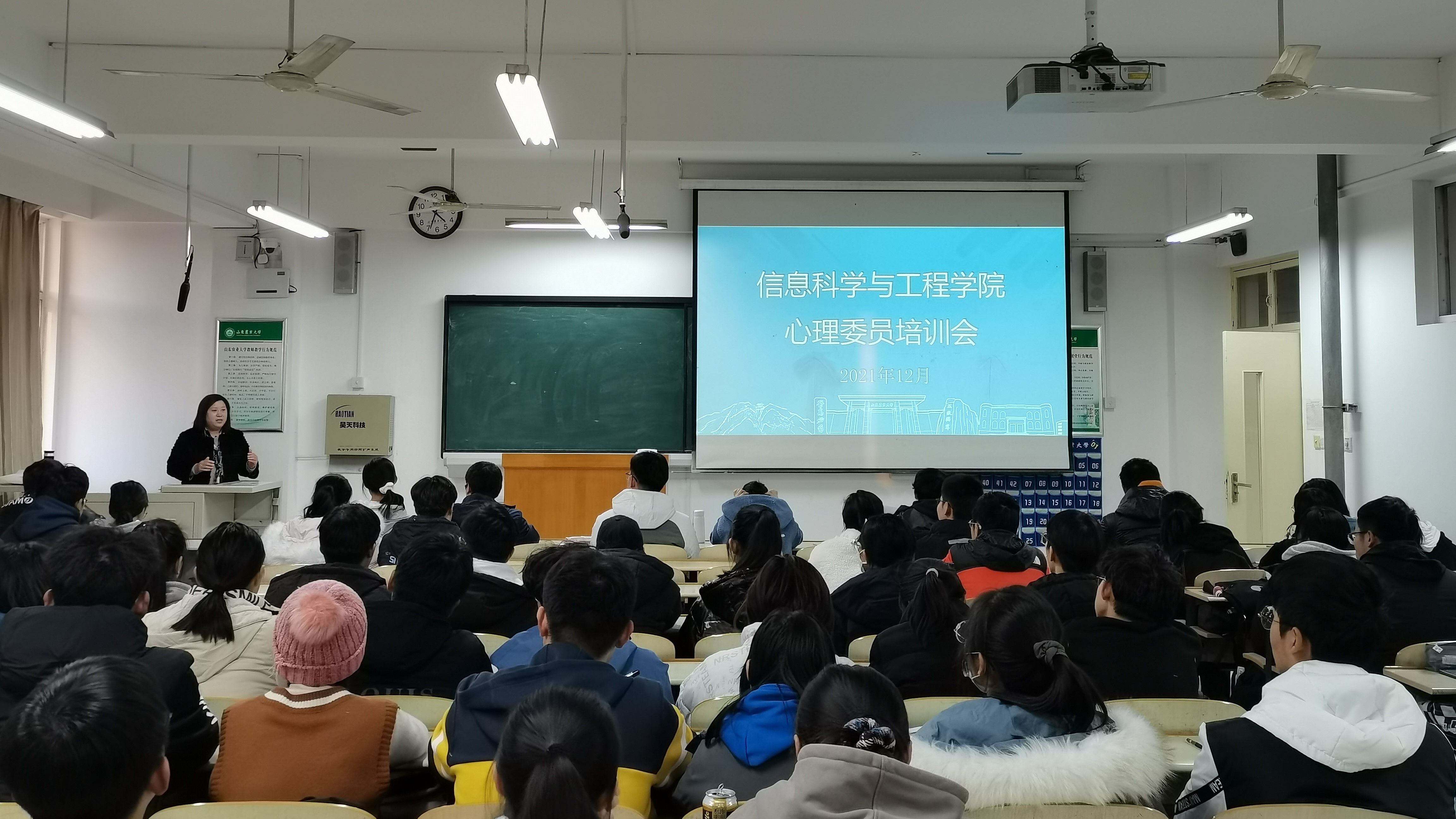 为丰富班级心理委员的心理健康知识,提升班级心理委员开展心理健康教育工作的能力,增强学院心理健康教育工作实效。12月7日,信息学院于综合楼S321召开心理委员培训会,邀请校大学生心理教育中心专职心理教师尹红霞老师主讲。