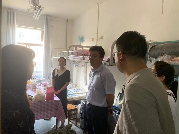 下午,学院领导与导师走进研究生新生宿舍,叮嘱新生用水用电安全,注意卫生,尽快熟悉环境,鼓励学生新起点新收获,脚踏实地,展青春风采。