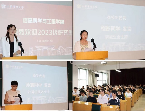 学院研究生会主席程彤代表老生向师弟师妹分享学习、科研、生活经历,帮助大家尽快融入研究生生活。新生代表、创新人才奖学金获得者孙震代表全体研究生新生表态。研究生辅导员王娇为同学们介绍了学校、学院的相关管理制度,为同学们开启未来的科研工作及生活提供了指导。