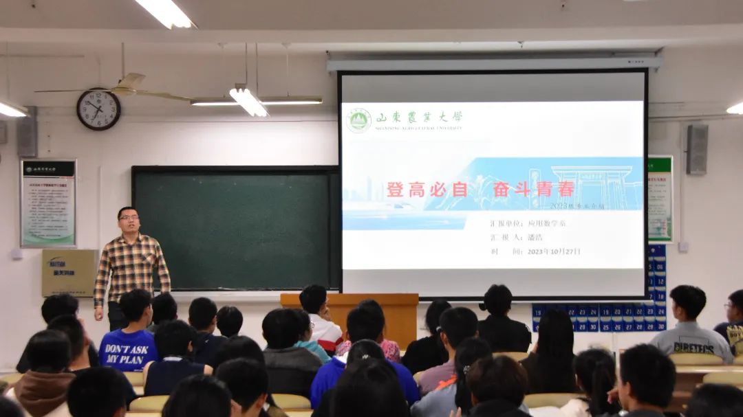 山东农业大学信息学院数学类专业由数学与应用数学、信息与计算科学两个专业组成。此次讲座中,潘浩老师为同学们介绍本科阶段数学类专业的培养目标、课程学分设置、专业师资力量、专业分流后两专业的异同以及数学类专业的就业升学情况。潘浩老师勉励同学们学好专业课,养成良好的思维方式和学习习惯,扎实掌握基础知识,积极参加学科相关竞赛,学以致用,提高自身素养水平。
