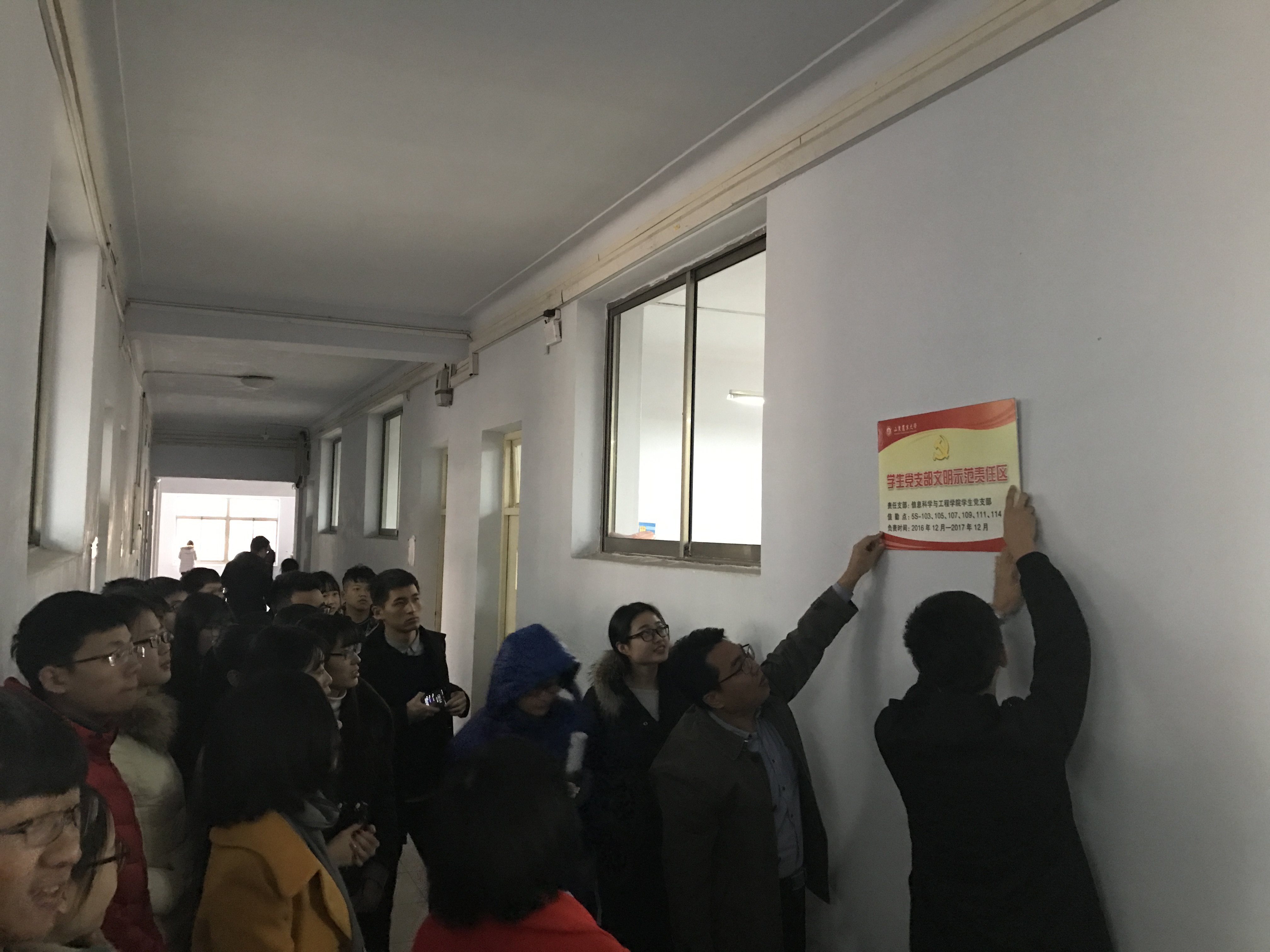 12月9日,信息学院学生党支部文明示范责任区启动仪式在北校区5S教学楼举行,信息学院党委副书记李华、全体辅导员及学生党员参加活动。